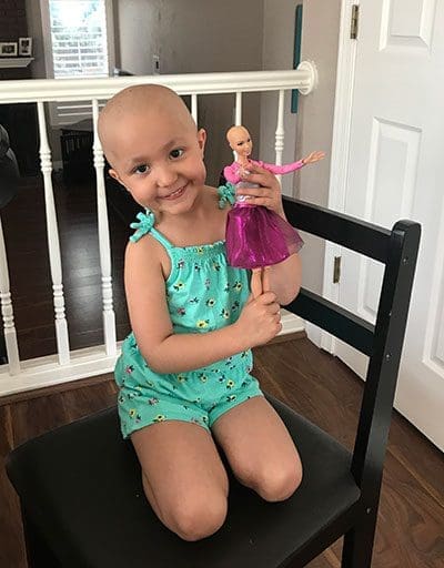 I ordered the Ella Doll a few weeks after my daughter was diagnosed as a Christmas gift. She only recently lost her hair, and so now more than ever it is important to have this doll around. Thank you for this gift for her. – Theresa, St. Paul