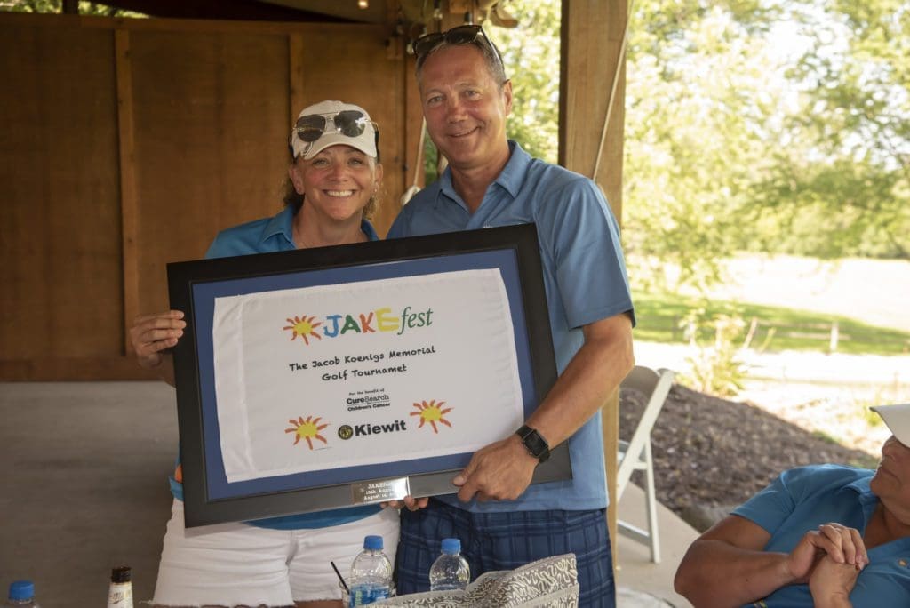 The Koenigs family knew that more research was needed to ensure that other children with rhabdomyosarcoma and other cancers receive the best care possible. They also wanted to raise awareness for childhood cancer. In 2007 Harry’s employer, Kiewit, turned the company’s annual employee golf outing into what is now the annual Jakefest event.