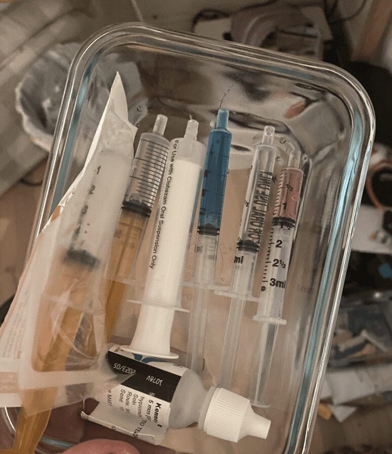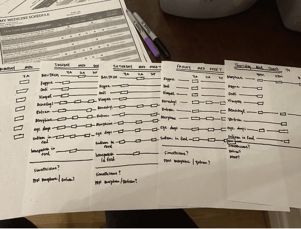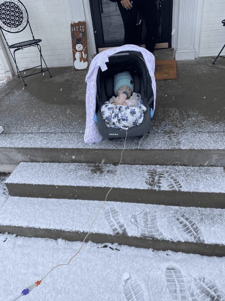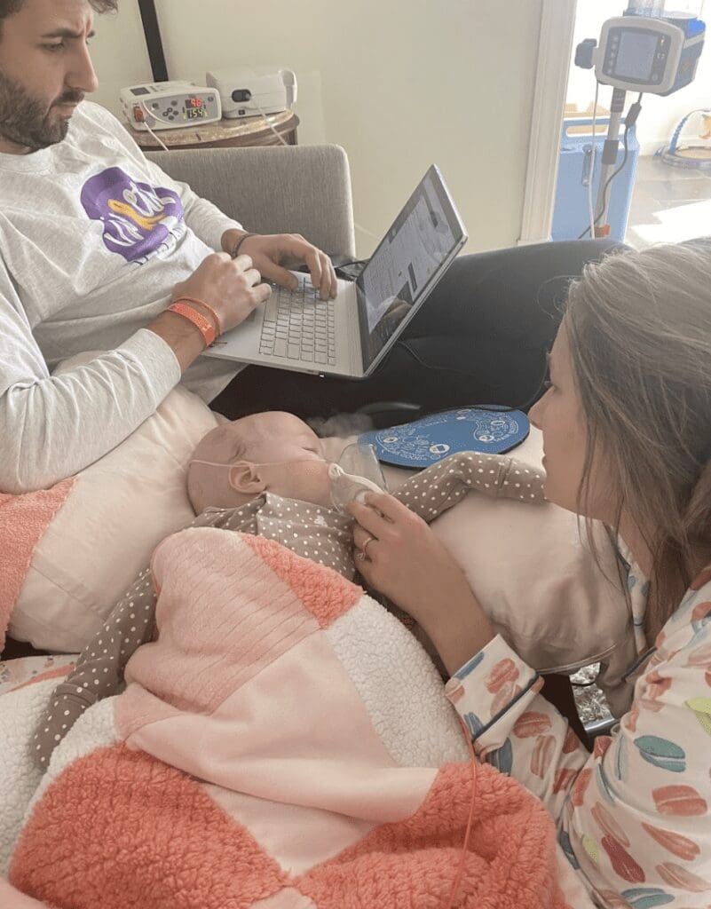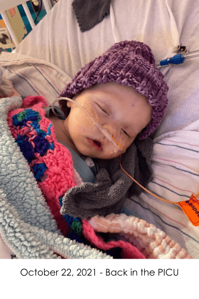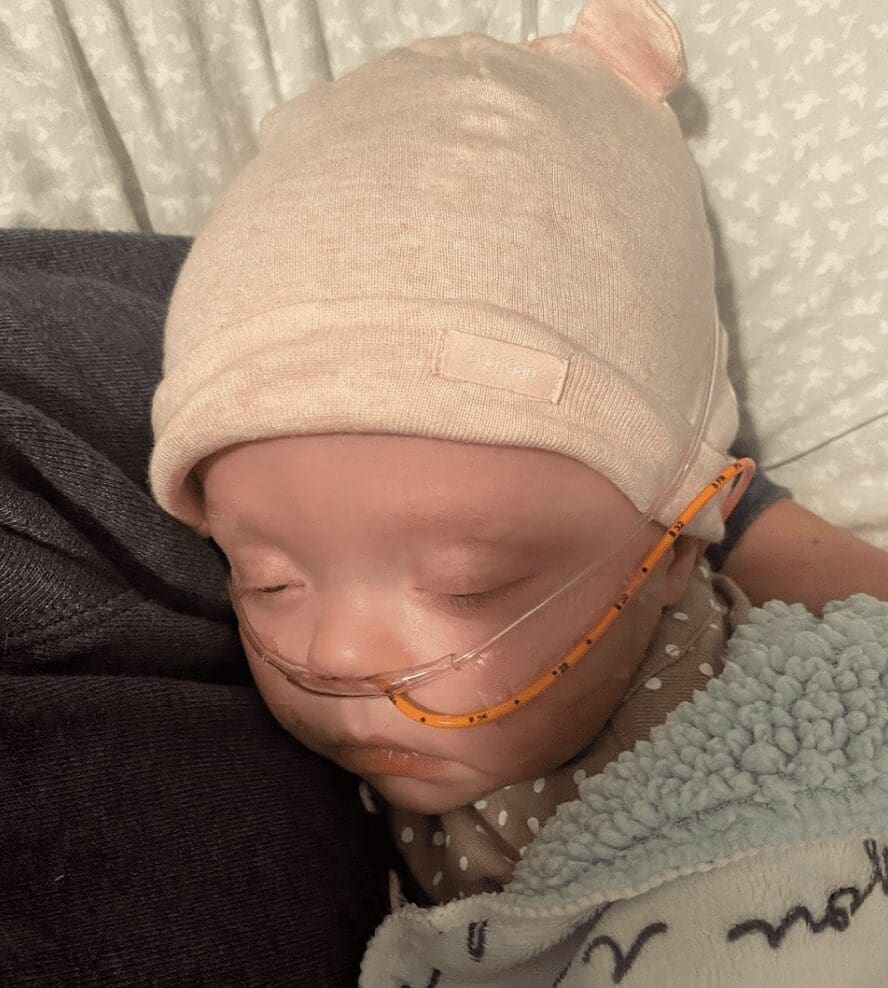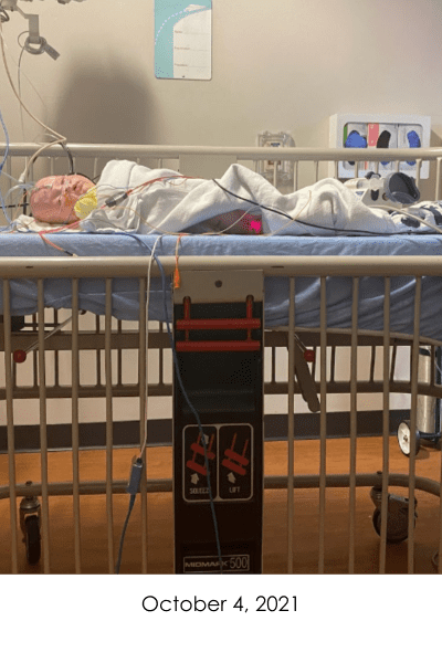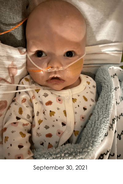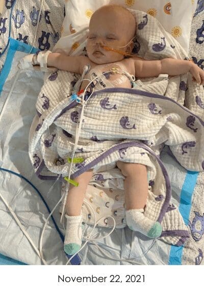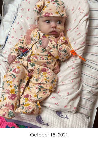 On November 4, 2021, Violet got to go home for the first time in 7 weeks. She went home on countless medications, TPN (nutrition through IV), nebulizers, constant oxygen, and a pulse ox monitor. After home health dropped off the boxes of supplies we would need for our short 4 day trip home, we wondered what we were thinking trying to do this on our own. Of course, it was so worth having her home.