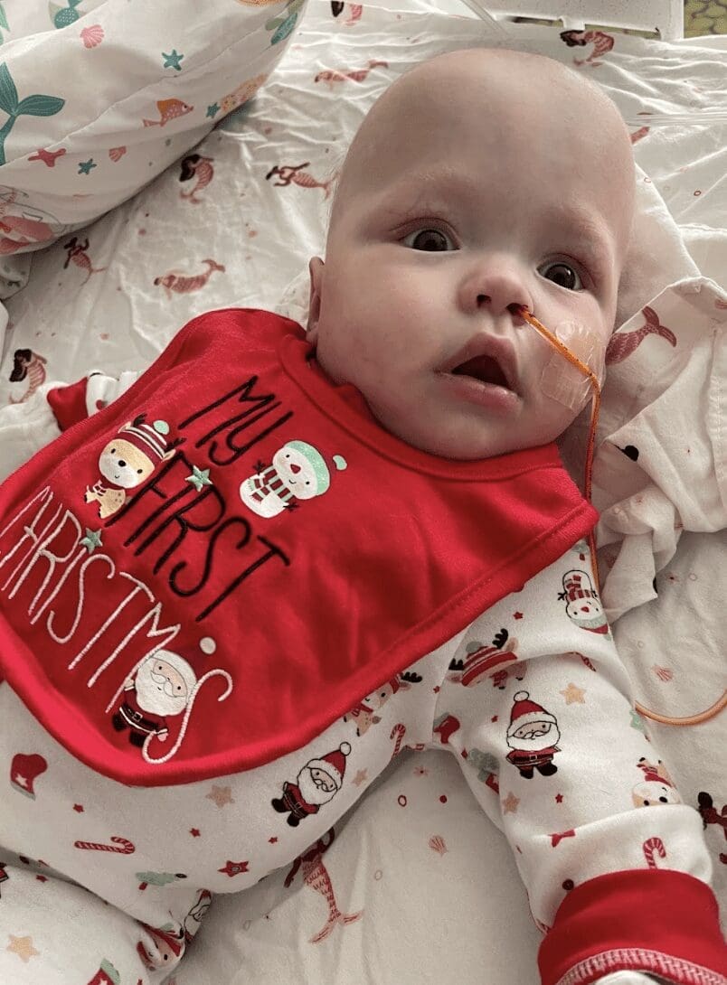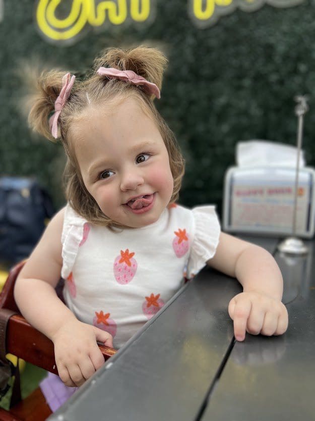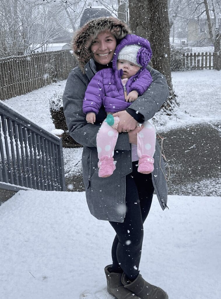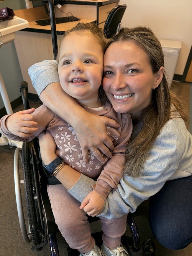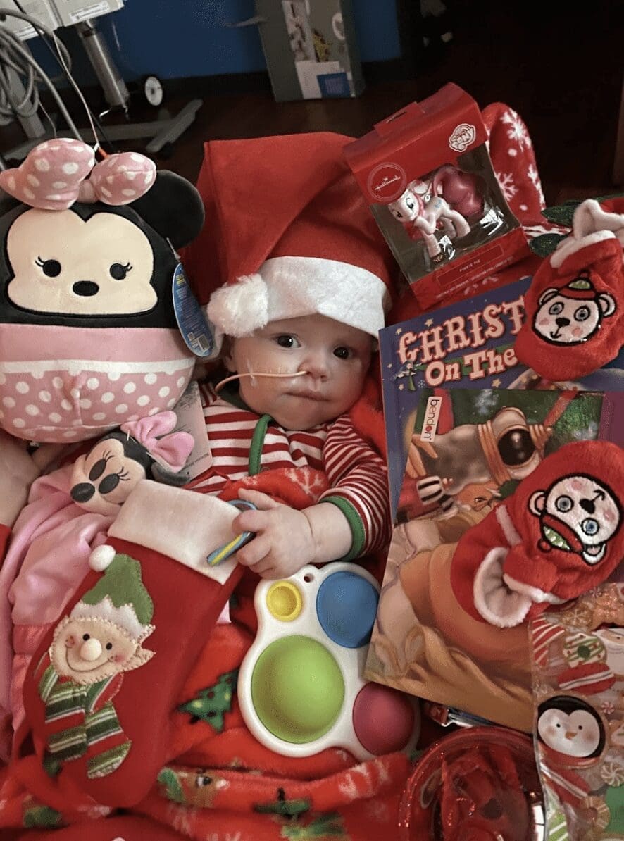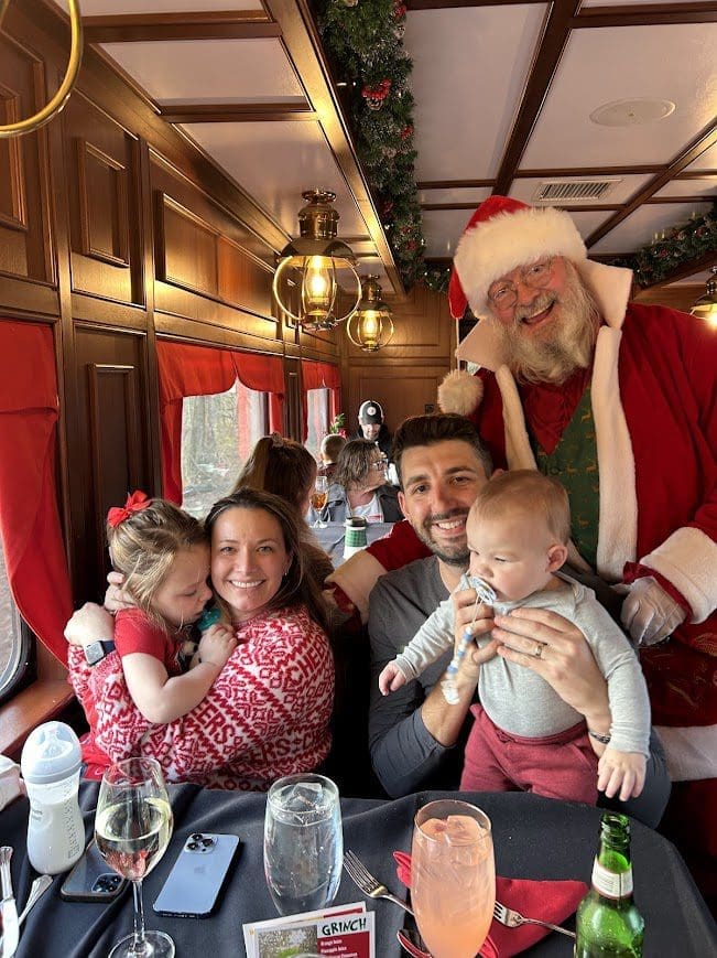 Amid the challenges, there are moments of unexpected joy and normalcy. Last Thanksgiving, Violet experienced the magic of her very first movie outing by watching Moana 2—a film that holds a special place in her heart (we watch Moana and Encanto every day!). She also got to take a train ride with Santa—though the loud microphone wasn’t her favorite part, it’s another memorable adventure added to our story. For Christmas, she even flew to Florida to spend time with her Nana and Pharaoh—her first visit to their house, which was extremely special for all of us.