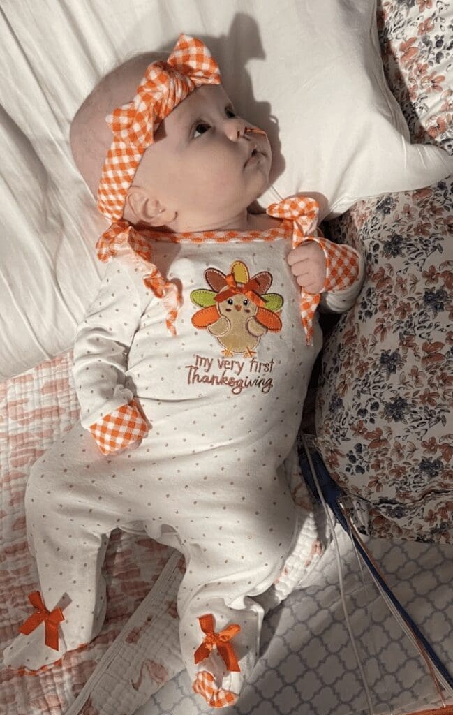 Thanksgiving, Christmas, New Year’s, and Easter all came and went, each holiday punctuated by the beeping of machines and the soft hum of medical equipment. But you better belive that Nanagram had this baby dressed up for all the things.