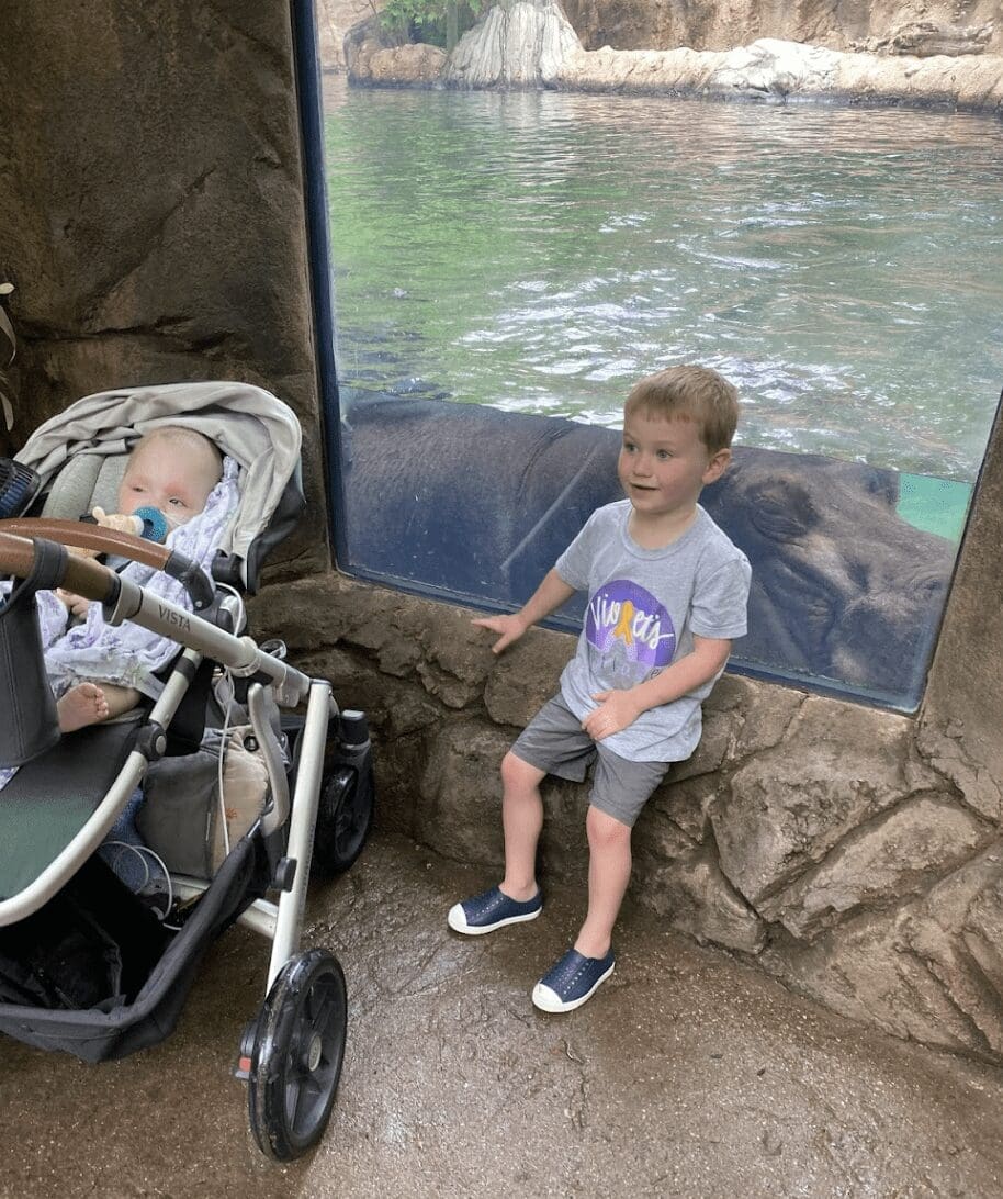 Radiation went well and, on June 2, 2022, Violet had her last radiation treatment! We celebrated with a trip to the Cincinnati Zoo. So began our new normal, taking Violet to multiple appointments per week. Treatment left her with many delays, most that she still faces today. Each week Violet had her regular doctors' appointments, as well as physical, occupational, speech, and vision therapy sessions.